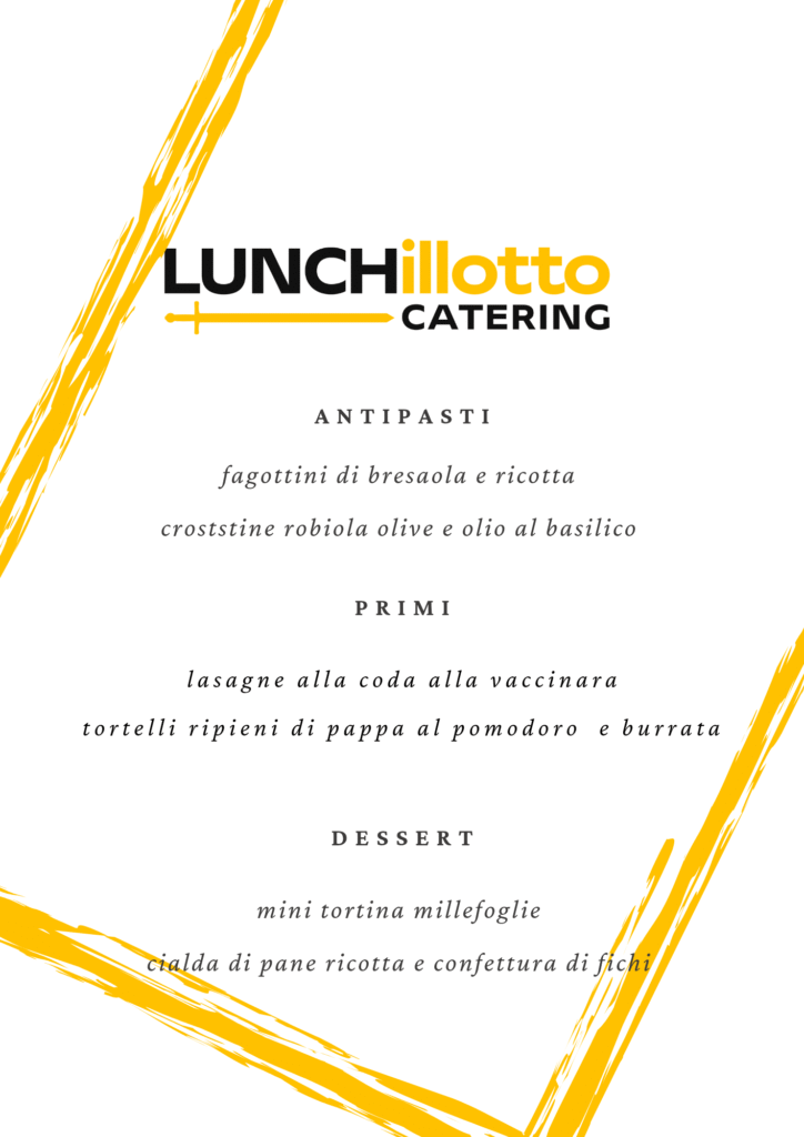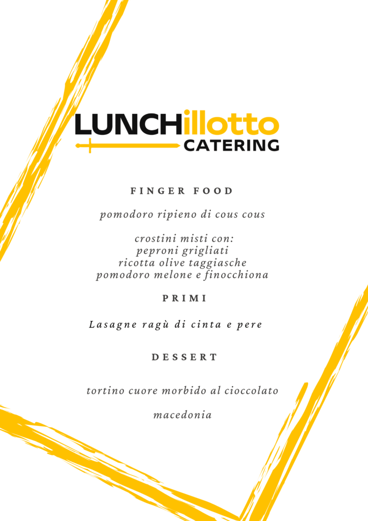 ECCELLENTE In base a 27 recensioni Pubblicato su Massimiliano ArrighiTrustindex verifica che la fonte originale della recensione sia Google. Servizio molto efficiente, qualità prezzo adeguata con quantità abbondanti, buon cibo con tanta scelta nei menù a disposizione e nel poterli comporre. Gentilezza e professionalità. Consigliatissimo.Pubblicato su Fabio LocatelliTrustindex verifica che la fonte originale della recensione sia Google. Mitico. Il gestore è cordiale e molto simpatico. Cibo ottimoPubblicato su Simona MaioranaTrustindex verifica che la fonte originale della recensione sia Google. Mi sono affidata a loro più di una volta per i buffet dei compleanni dei miei bimbi, sempre tutto molto buono, tanta scelta di cibo, puntuali e cordiali. Super consigliato!!Pubblicato su Eleonora CaramelliTrustindex verifica che la fonte originale della recensione sia Google. LUNChillotto ha fatto un servizio di catering presso di noi per un compleanno. Hanno apparecchiato, cucinato, servito e ripulito. Tutto davvero molto buono, tutto molto professionale. Personale super cordiale.Pubblicato su Lisa DoveriTrustindex verifica che la fonte originale della recensione sia Google. Abbiamo ordinato il menù per capodanno. Il menù è molto ben pensato, la qualità del cibo è ottima e le quantità sono abbondanti. Il prezzo è più che onesto, consiglio vivamente!Pubblicato su Giulio FrusiTrustindex verifica che la fonte originale della recensione sia Google. Buona varietà di piatti da asportoPubblicato su Massimo FrancoTrustindex verifica che la fonte originale della recensione sia Google. Abbiamo ordinato da asporto con consegna a domicilio, i tempi di consegna sono stati rispettati, la qualità del cibo è ottima, come la disponibilità e la professionalità del personale nel proporre i piatti del giorno e raccogliere le ordinazioniPubblicato su Marco FedrigoTrustindex verifica che la fonte originale della recensione sia Google. Fornito.